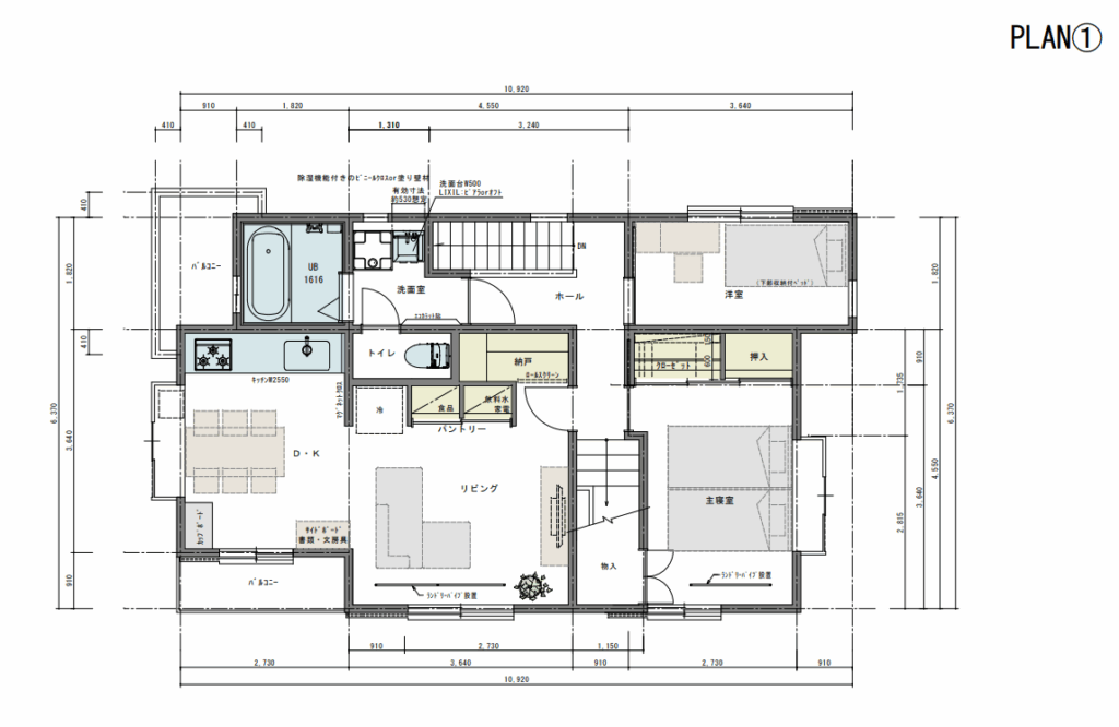 2つのプランを見ながらお打合せを行い、収納したい物の量や種類を洗い出し、更に動線計画を踏まえた上で、PLAN①をご採用いただきました。
