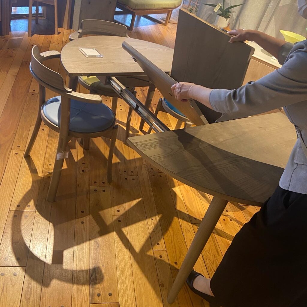 「エクステンションテーブル」といって、天板の幅が伸縮するタイプをお勧めしました。