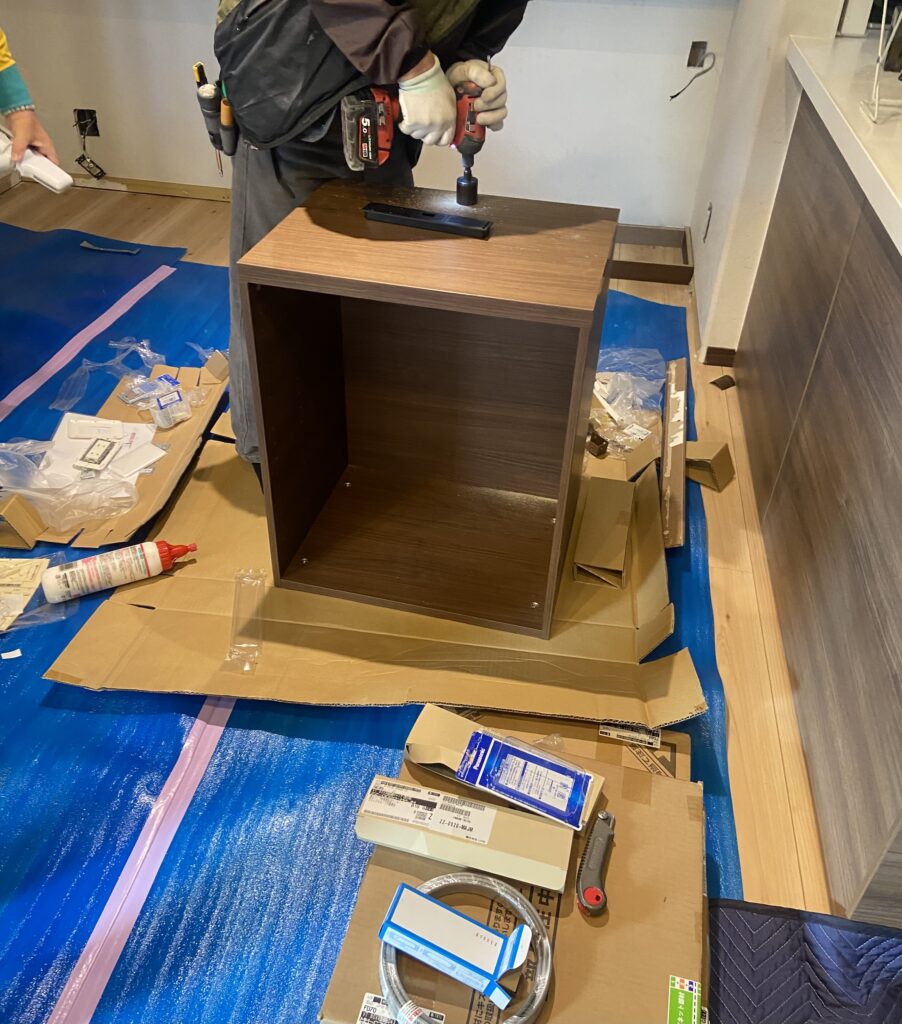 まず、ダイニング側の壁面に、デスクカウンターを設置することに。